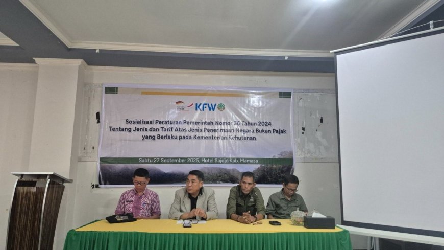 Mamasa, Sulawesi Barat – Balai Besar Konservasi Sumber Daya Alam (BBKSDA) Sulawesi Selatan menyelenggarakan sosialisasi Peraturan Pemerintah (PP) Nomor No. 36 Tahun 2024 tentang Jenis dan Tarif atas Jenis Penerimaan Negara Bukan Pajak (PNBP) yang berlaku pada Kementerian Kehutanan. Kegiatan yang berlangsung di Hotel Sajojo, Kabupaten Mamasa pada Sabtu, 27 September 2025. Kegiatan ini bertujuan untuk membangun pemahaman bersama mengenai aturan baru PNBP di kalangan para pemangku kepentingan.